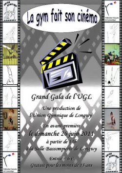L'UGL vous invite à son gala annuel qui aura lieu le dimanche 26 juin 2011 à partir de 14h à la salle Bassompierre de Longwy sur le thème du cinéma (entrée = 6 € - gratuit pour les moins de 15 ans).