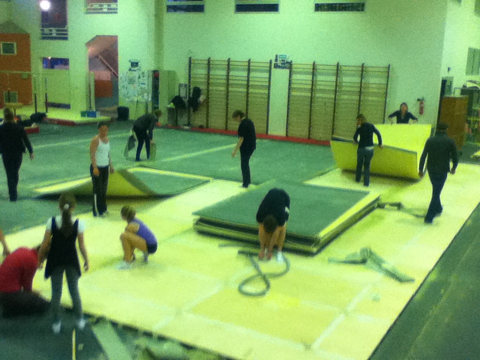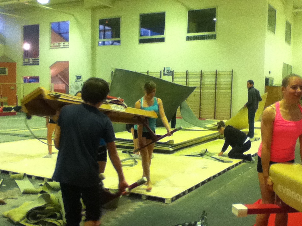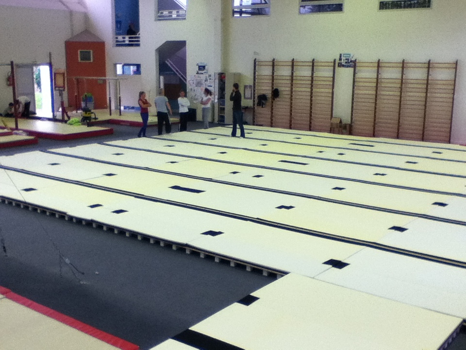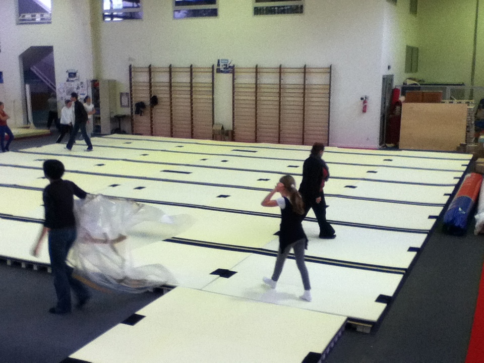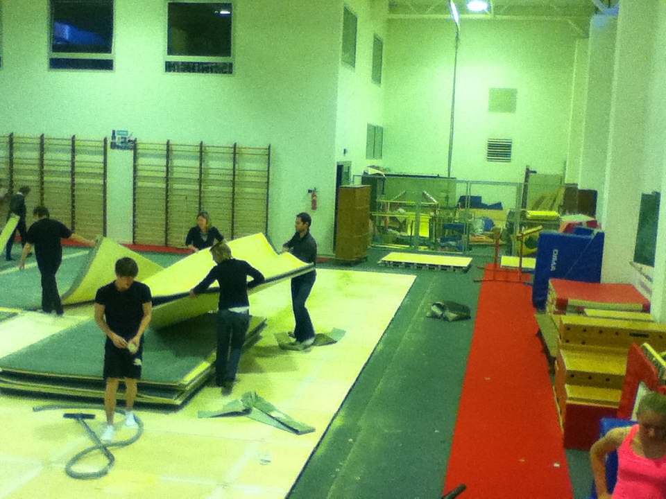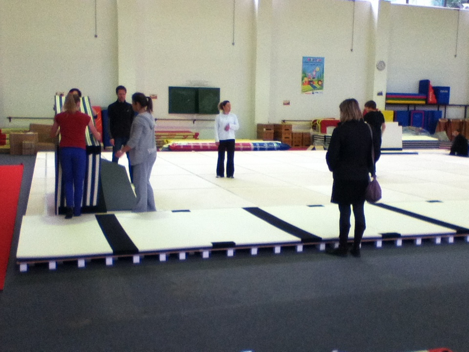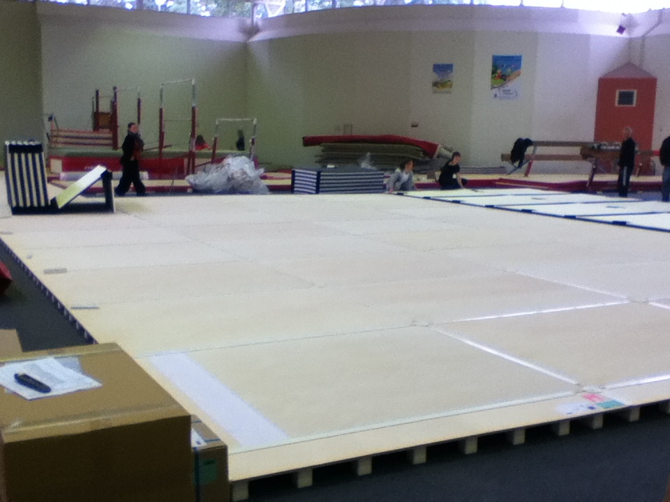 Après une attente interminable, le voilà enfin ! Le nouveau praticable et la piste d'acrobatie qui l'accompagne est enfin arrivé. Voici quelques photos du démontage de l'ancien praticable et du montage du nouveau !