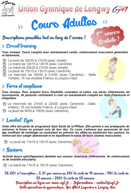 L'Union Gymnique de Longwy propose des cours entretien adultes. La 1ère séance est gratuite !